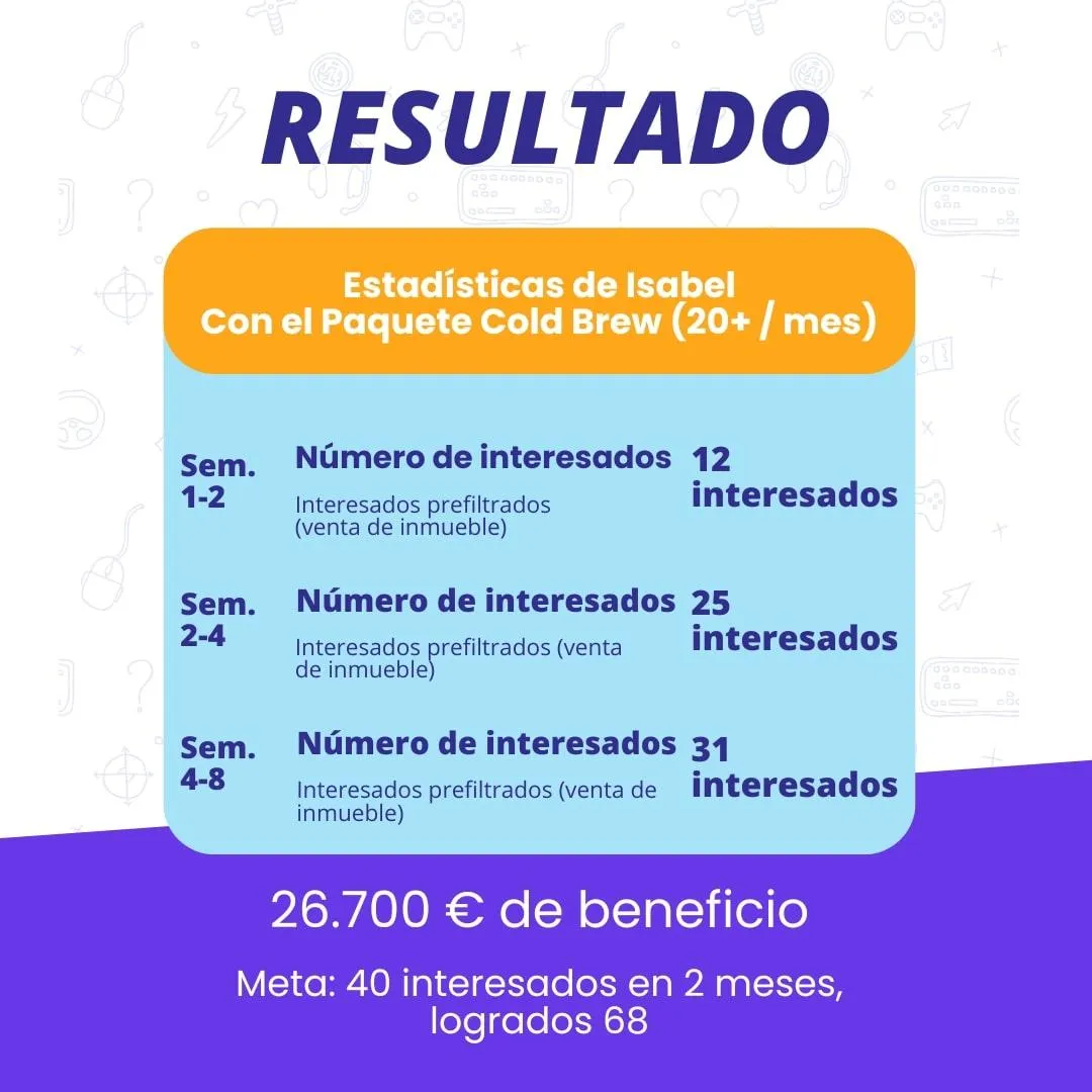 Isabel – 26.000 € de beneficio en 60 días, con el paquete Cold Brew: 2.000 €